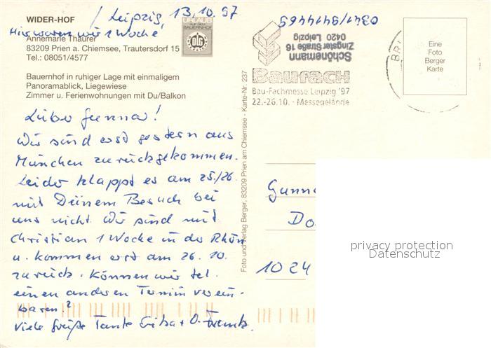 73660514 alte Postkarte Prien Chiemsee Wider Hof Urlaub auf dem Bauernhof Ferienwohnungen postalisch gelaufen Erhaltung siehe scans [FriedD77] KatCode: 11110009187162