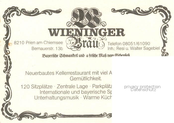 73081883 Prien Chiemsee Wieninger Braeu postalisch nicht gelaufen Werbekarte (keine Postkarte) Erhaltung siehe scans [LiesaD40] KatCode: 11110009187162