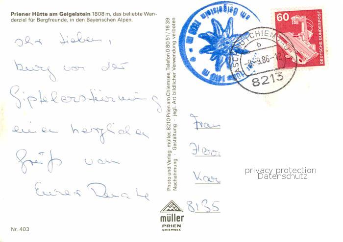 72755542 alte Postkarte Priener Huette am Geigelstein Gipfelkreuz Terrasse Gastraum postalisch gelaufen Erhaltung siehe scans [WerneD78] KatCode: 11110009187114