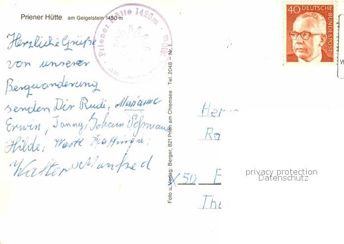 72831710 alte Postkarte Priener Huette Geigelstein Wegkreuz Gaststube postalisch gelaufen Erhaltung siehe scans [KathaD81] KatCode: 11110009187114