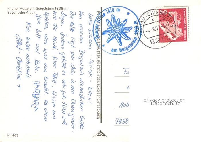 72970475 alte Postkarte Priener Huette Gipfelkreuz Geigelstein postalisch gelaufen Erhaltung siehe scans [LiesaD40] KatCode: 11110009187114