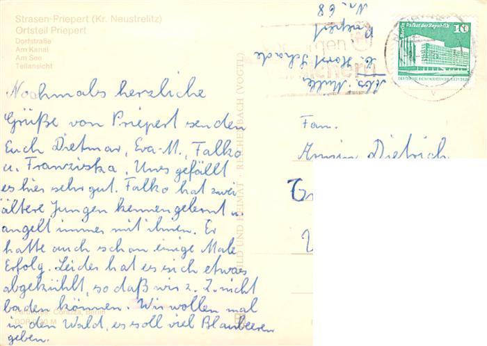 73905299 alte Postkarte Priepert Dorfstrasse Kanal See Teilansicht postalisch gelaufen Erhaltung siehe scans [WerneD78] KatCode: 11110013055055