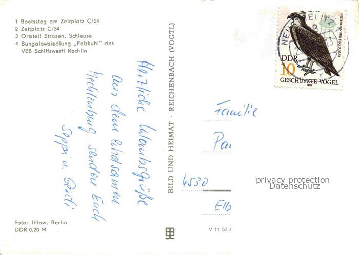 74091224 alte Postkarte Priepert Strasen-Priepert Mecklenburg-Strelitz Bootssteg am Zeltplatz C/54 OT Strosen Schleuse Bungalowsiedlung Pelzkuhl des VEB Schiffswerft Rechling postalisch gelaufen Erhaltung siehe scans [FriedD77] KatCode: 11110013055074