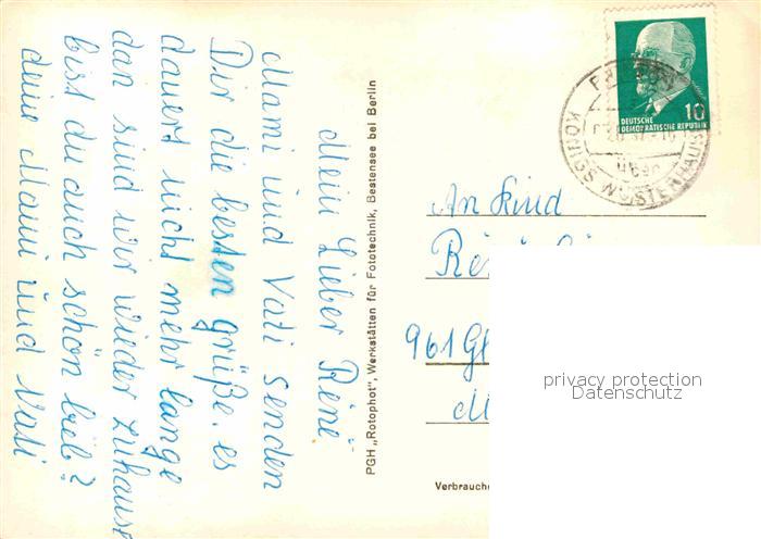 72703633 alte Postkarte Prieros 650 Jahre Jubilaeum Panorama Bruecke Segelboot Wohnhaus postalisch gelaufen Erhaltung siehe scans [FriedD77] KatCode: 11110012061217