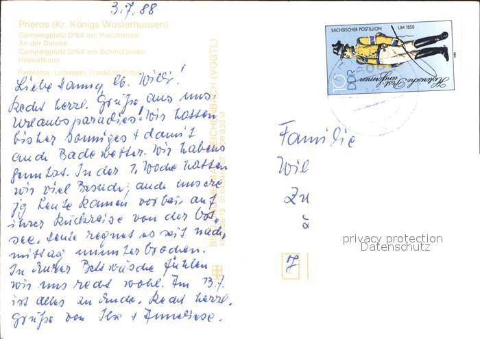72374243 alte Postkarte Prieros Campingplatz Dahme Schmoeldesee Heimathaus postalisch gelaufen Erhaltung siehe scans KatCode: 11110012061217