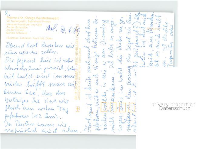 72199557 Prieros VE Trabergestuet Konsum Cafe Schmoelde Dahme Schleuse postalisch nicht gelaufen Erhaltung siehe scans KatCode: 11110012061217