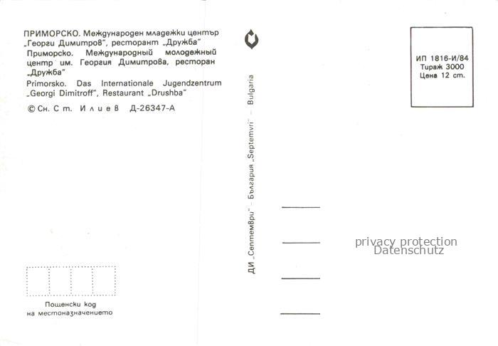 74040617 Primorsko BG Internationale Jugendzentrum Georgi Dimitroff Restaurant Drushba postalisch nicht gelaufen Erhaltung siehe scans [IrynaD87] KatCode: 11090