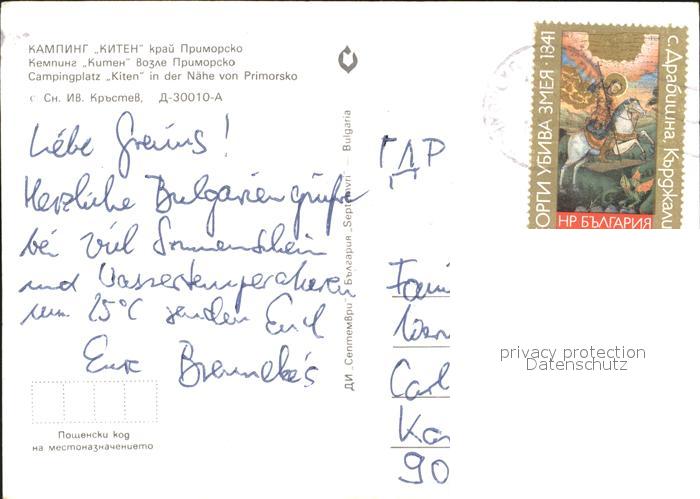 old postcard Primorsko Camping Kiten Strand postalisch gelaufen Erhaltung siehe scans