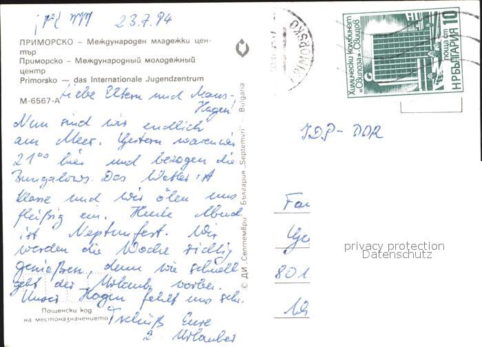 old postcard Primorsko Schwimmbad Strand Hotels postalisch gelaufen Erhaltung siehe scans