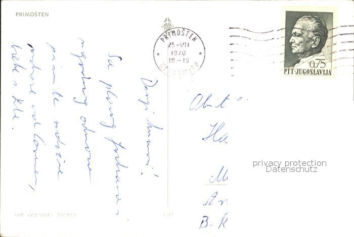 old postcard Primosten Blick von der Terrasse postalisch gelaufen Erhaltung siehe scans