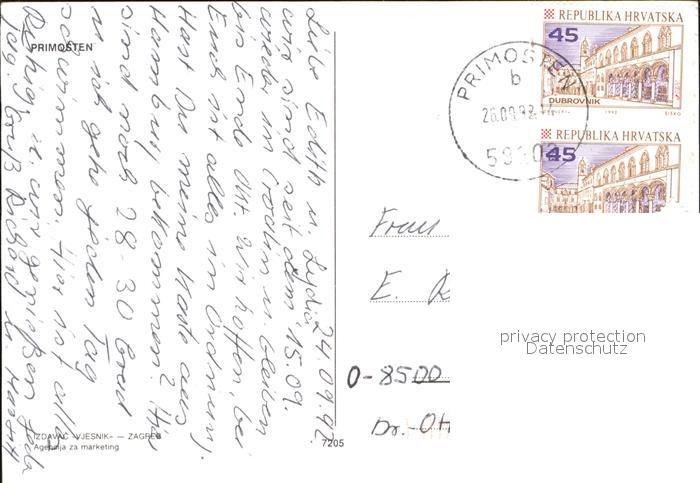 old postcard Primosten Fliegeraufnahme postalisch gelaufen Erhaltung siehe scans