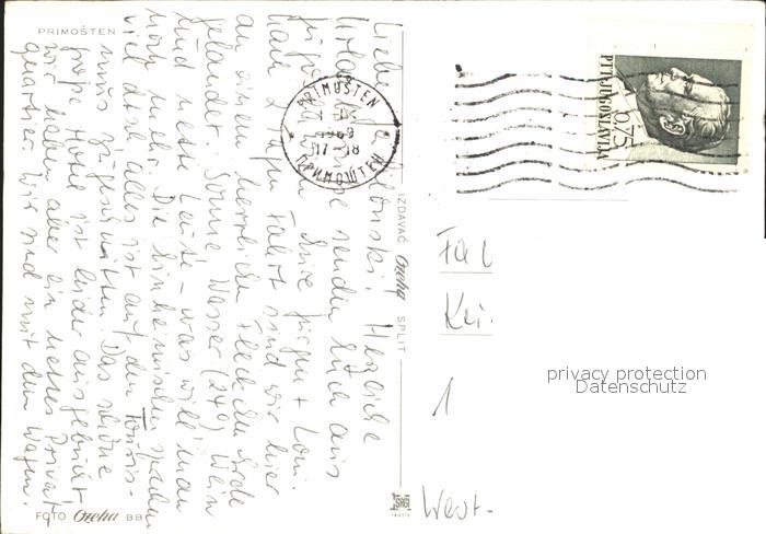 old postcard Primosten Fliegeraufnahme postalisch gelaufen Erhaltung siehe scans