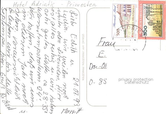 old postcard Primosten Fliegeraufnahme Hotel Adriatic postalisch gelaufen Erhaltung siehe scans