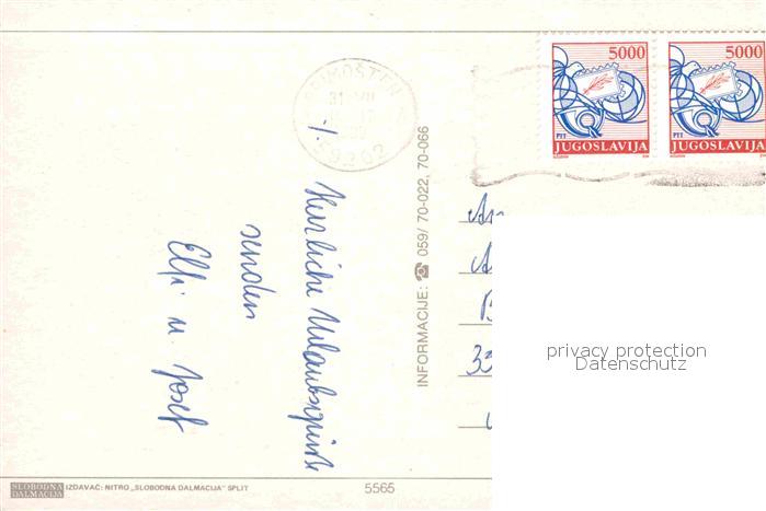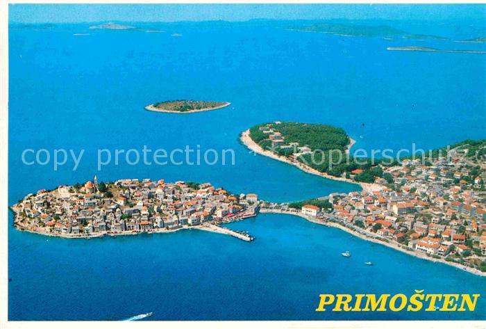 old postcard Primosten Halbinsel Fliegeraufnahme postalisch gelaufen Erhaltung siehe scans [FriedD77]