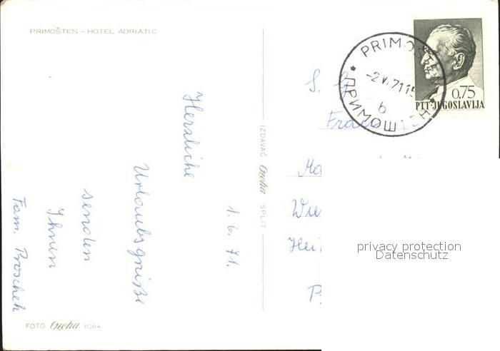 old postcard Primosten Hotel Adriatic postalisch gelaufen Erhaltung siehe scans
