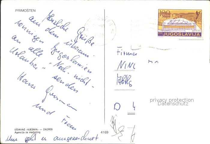 old postcard Primostena Panorama Hafen Insel postalisch gelaufen Erhaltung siehe scans