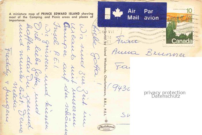 74096492 old postcard Prince Edward Island Canada Landkarte postalisch gelaufen Erhaltung siehe scans [IrynaD87] KatCode: 14110