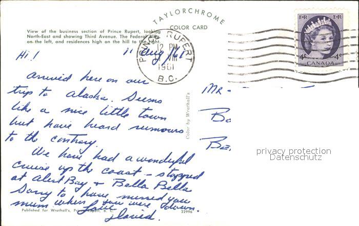 old postcard Prince Rupert Business section Third Avenue postalisch gelaufen Erhaltung siehe scans