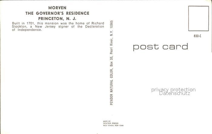 72486809 Princeton New Jersey Home of Richard Stockton postalisch nicht gelaufen Erhaltung siehe scans KatCode: 14140320000000