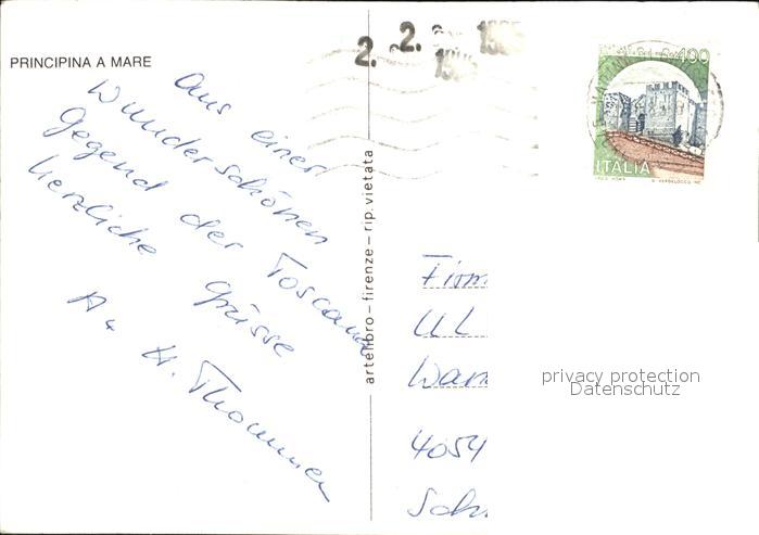 old postcard Principina a Mare Strand postalisch gelaufen Erhaltung siehe scans