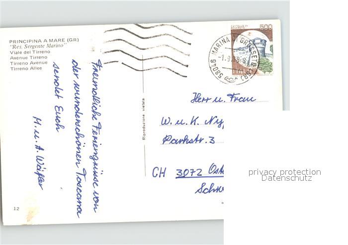 old postcard Principina a Mare Viale del Tirreno postalisch gelaufen Erhaltung siehe scans