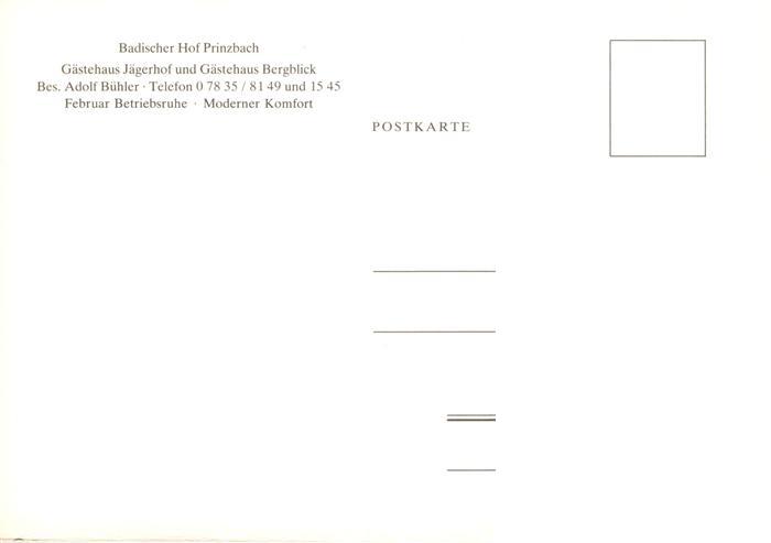 73931123 Prinzbach Biberach Kinzigtal Badischer Hof Gaestehaus Jaegerhof und Gaestehaus Bergblick postalisch nicht gelaufen Erhaltung siehe scans [FriedD77] KatCode: 11110008317011