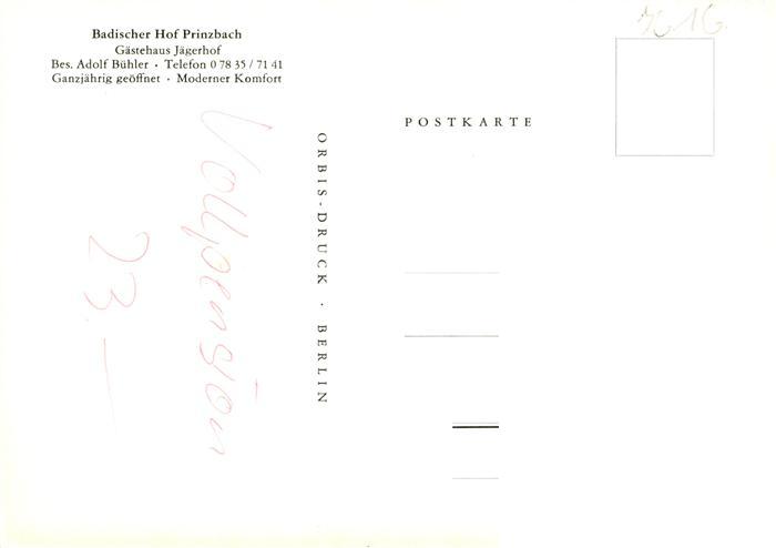 73934989 Prinzbach Biberach Kinzigtal Gaestehaus Jaegerhof postalisch nicht gelaufen Erhaltung siehe scans [WerneD78] KatCode: 11110008317011