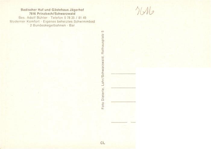 73930459 Prinzbach Biberach Kinzigtal Gasthaus Badischer Hof und Gaestehaus Jaegerhof postalisch nicht gelaufen Erhaltung siehe scans [FriedD77] KatCode: 11110008317011