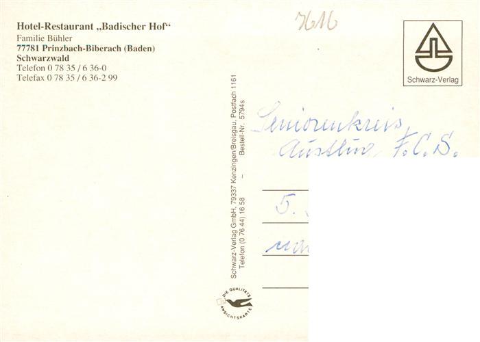 73931055 Prinzbach Biberach Kinzigtal Hotel Restaurant Badischer Hof postalisch nicht gelaufen Erhaltung siehe scans [FriedD77] KatCode: 11110008317011