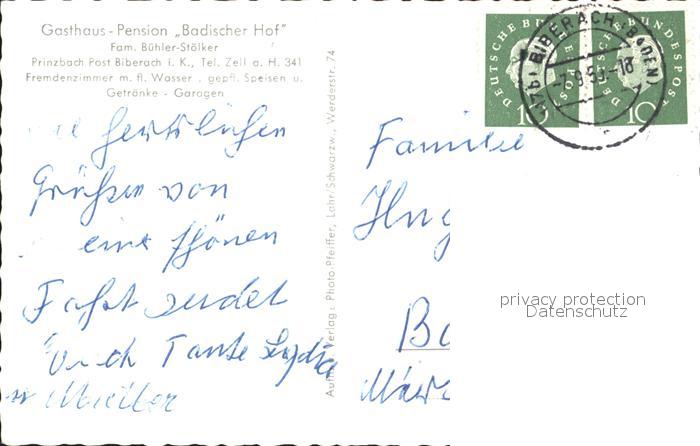 32040755 alte Postkarte Prinzbach Gasthaus Pension Badischer Hof postalisch gelaufen Erhaltung siehe scans KatCode: 11110008317011