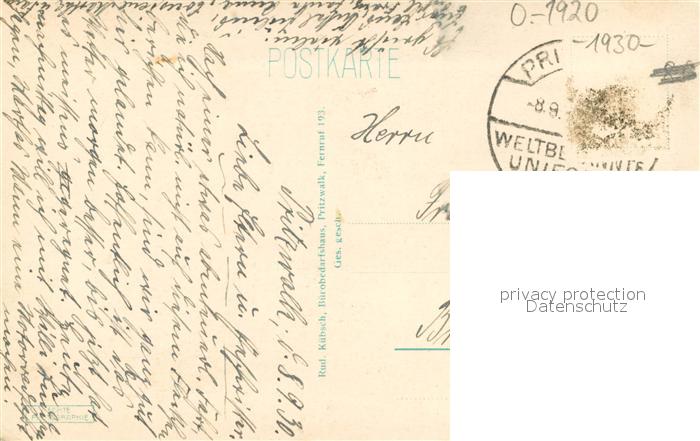 73696282 alte Postkarte Pritzwalk Gesamtansicht postalisch gelaufen Erhaltung siehe scans [FriedD77] KatCode: 11110012070316