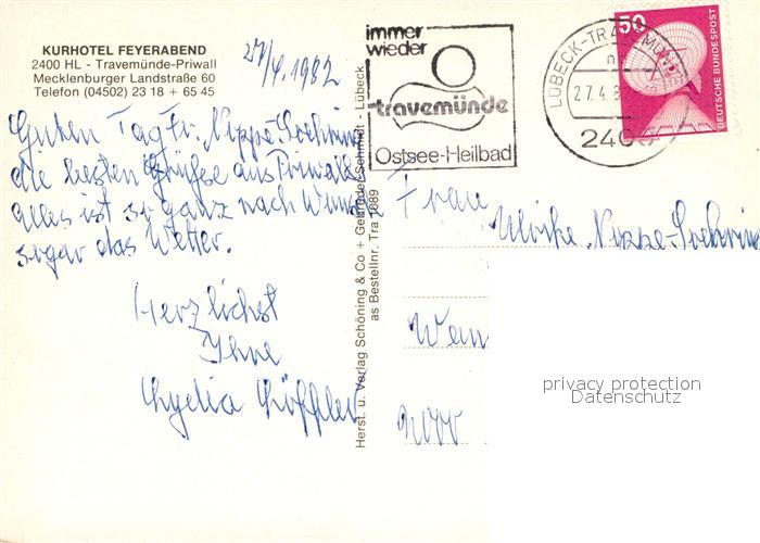 73013476 alte Postkarte Priwall Travemuende Kurhotel Feyerabend postalisch gelaufen Erhaltung siehe scans [NatalD47] KatCode: 11110001003000