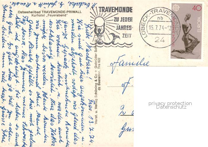 73226656 alte Postkarte Priwall Travemuende Kurhotel Feyerabend postalisch gelaufen Erhaltung siehe scans [KathaD81] KatCode: 11110001003000