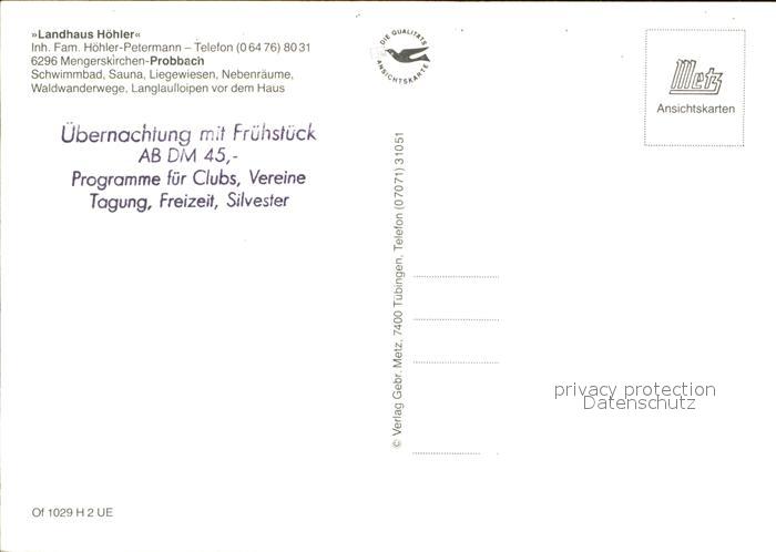 72597643 Probbach Landhaus Hoehler postalisch nicht gelaufen Erhaltung siehe scans [LiesaD40] KatCode: 11110006533011