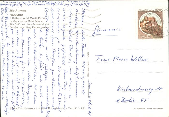 old postcard Procchio Portoferraio Toscana Elba Pittoresca Golfo visto dal Monte Perone postalisch gelaufen Erhaltung siehe scans