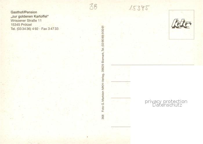 73648345 Proetzel Gasthof Pension zur goldenen Kartoffel Gastraeume postalisch nicht gelaufen Erhaltung siehe scans [WerneD78] KatCode: 11110012064393