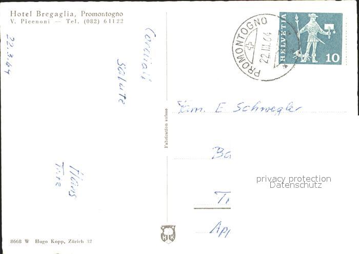 11645233 alte Postkarte Promontogno Hotel Bregaglia postalisch gelaufen KatCode: 11470100335210