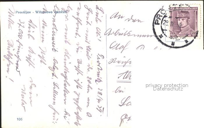 31739648 old postcard Prostejov Wilsonovo namesti postalisch gelaufen Erhaltung siehe scans KatCode: 11520