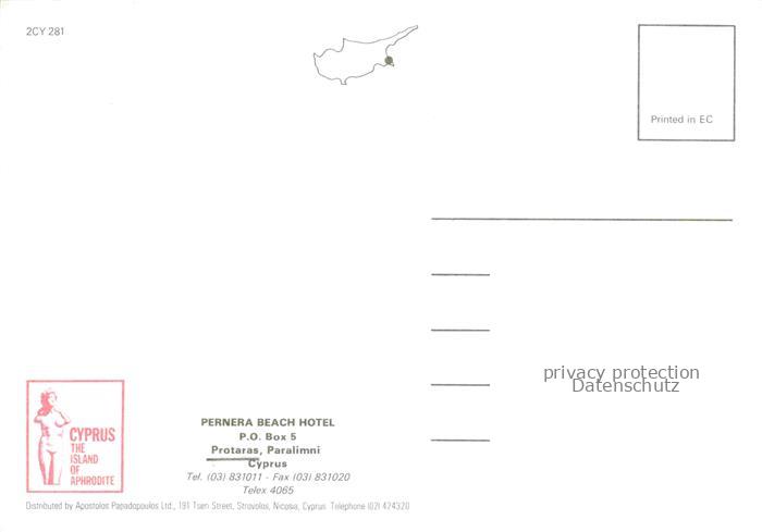 74110185 old postcard Protaras Paralimni Cyprus Zypern Pernera Beach Hotel Strand postalisch gelaufen Erhaltung siehe scans [WerneD78] KatCode: 13190
