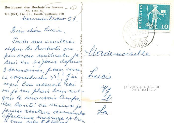 13822651 alte Postkarte Provence-Mutrux VD Restaurant des Rochats postalisch gelaufen Erhaltung siehe scans [FriedD77] KatCode: 11470240780066