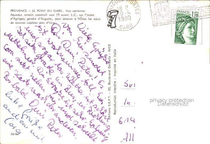 12502838 carte postale Provence Region Le Pont du Gard postalisch gelaufen Erhaltung siehe scans KatCode: 11170013113001