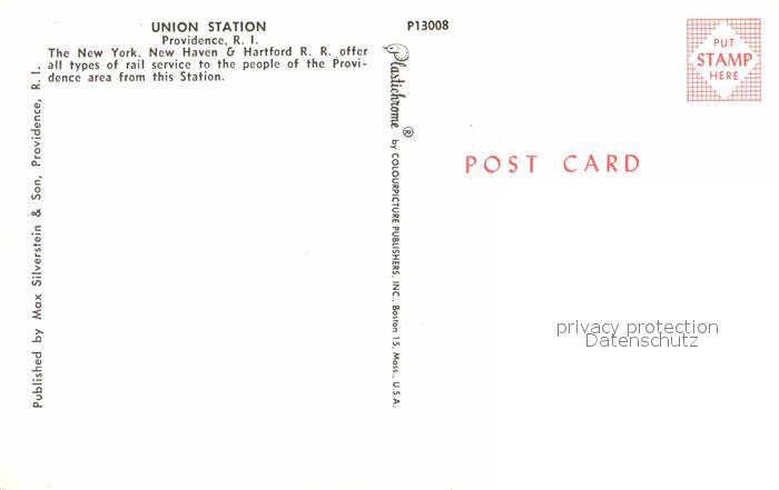 72905619 Providence Rhode Island Union Station postalisch nicht gelaufen Erhaltung siehe scans [FriedD77] KatCode: 14140420000000