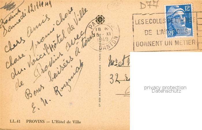 13828293 Provins 77 Hotel de Ville postalisch gelaufen Erhaltung siehe scans [FriedD77] carte postale Frie Katcode 11170077377379