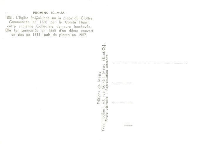 13909663 Provins 77 Seine-et-Marne Eglise St Quirlace sur la place du Cloitre postalisch nicht gelaufen Erhaltung siehe scans [WerneD78] Wern Katcode 11170077377379