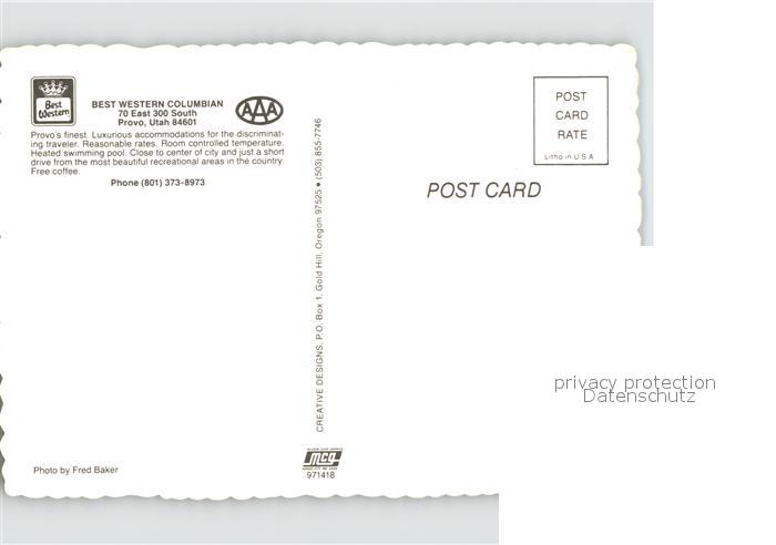 71850516 Provo Utah Best Western Columbian Motel Mountains postalisch nicht gelaufen Erhaltung siehe scans KatCode: 14140470000000