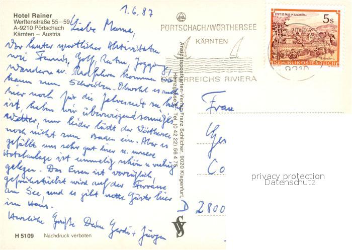 73586722 alte Postkarte P?rtschach W?rthersee Hotel Rainer Fliegeraufnahme postalisch gelaufen Erhaltung siehe scans [PaolaD17] KatCode: