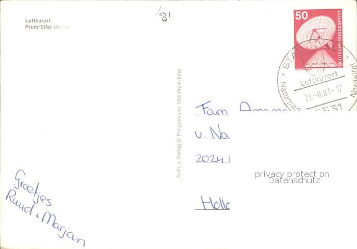 72172913 alte Postkarte Pruem Eifel postalisch gelaufen Erhaltung siehe scans KatCode: 11110007232108