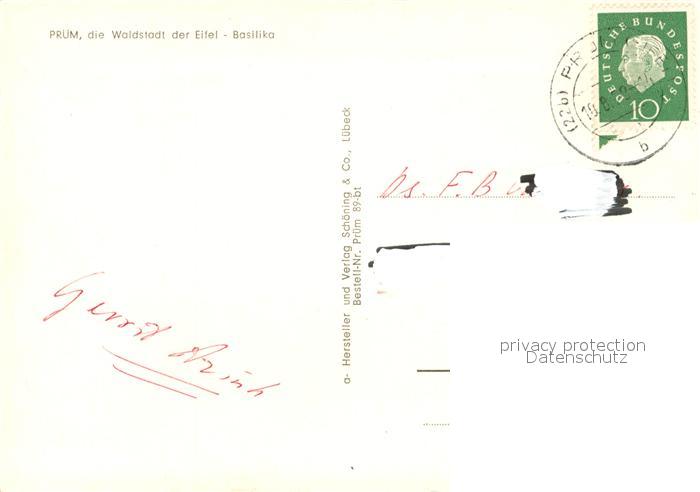 73306104 alte Postkarte Pruem Eifel Basilika Inneres postalisch gelaufen Erhaltung siehe scans [WerneD78] KatCode: 11110007232108