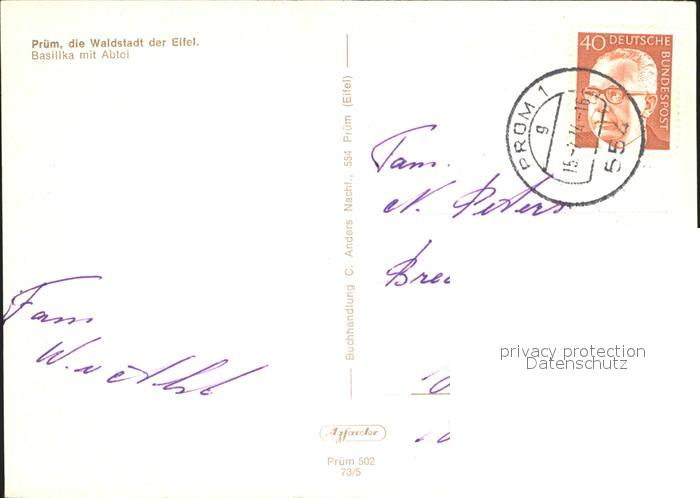72389872 alte Postkarte Pruem Eifel Basilika mit Abtei postalisch gelaufen Erhaltung siehe scans KatCode: 11110007232108