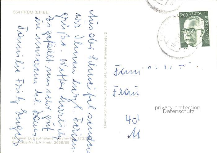 71992152 alte Postkarte Pruem Eifel Fliegeraufnahme postalisch gelaufen Erhaltung siehe scans KatCode: 11110007232108